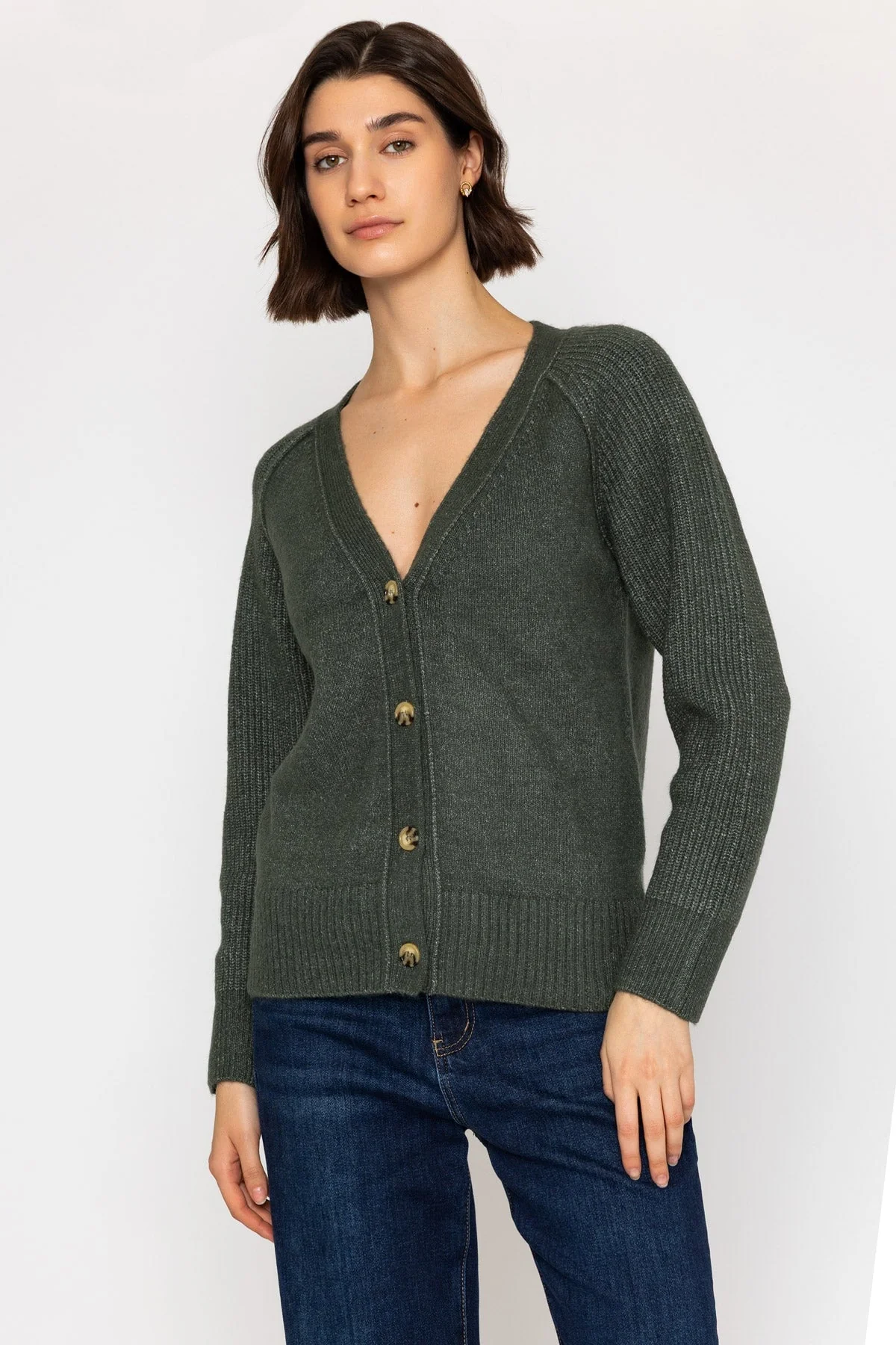 Khaki Cardigan with Ribbed Sleeves