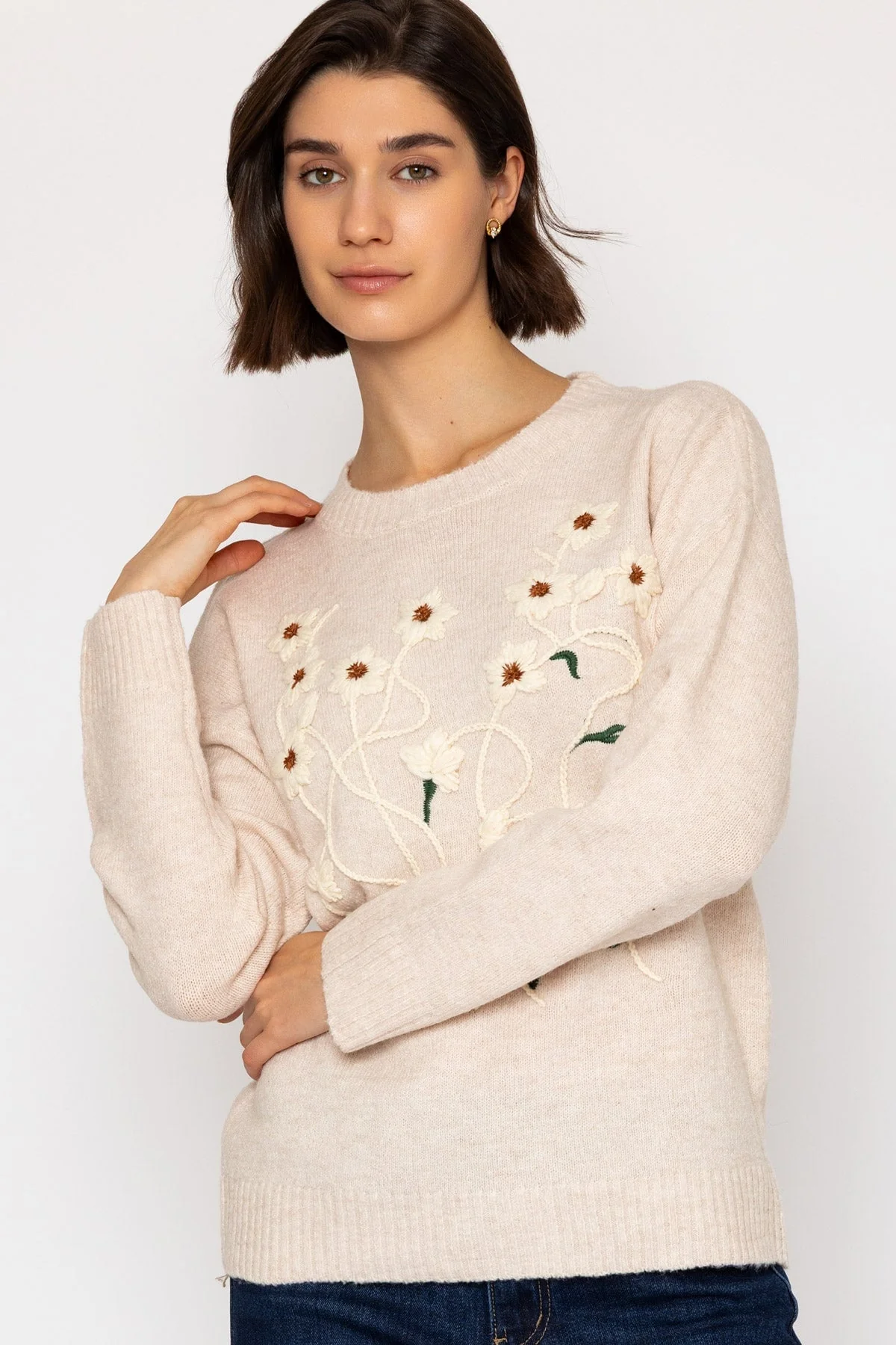 Cream Floral Stitch Knit Jumper