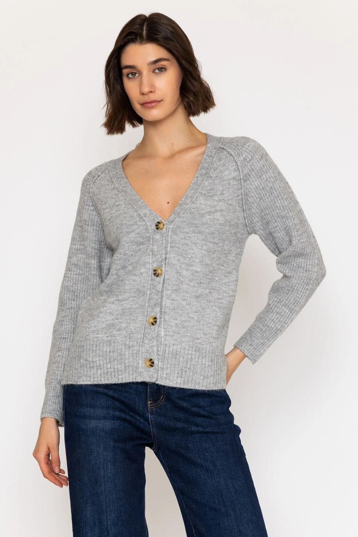 Grey Cardigan with Ribbed Sleeves