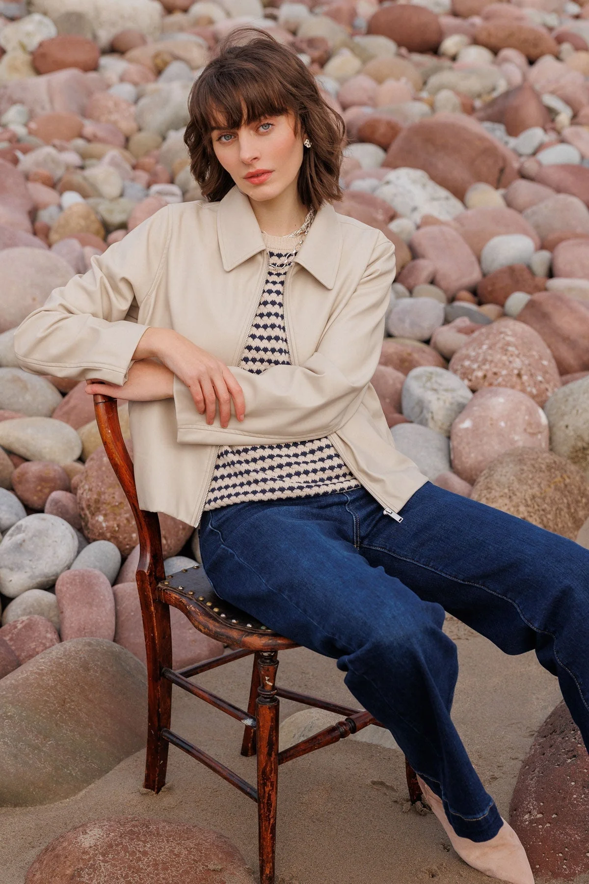 Cream Faux Leather Jacket