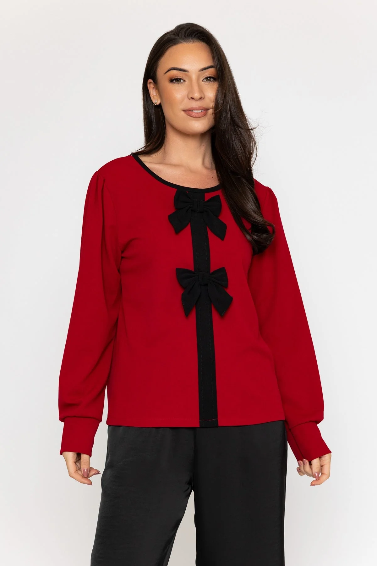 Burgundy Long Sleeve Bow Top