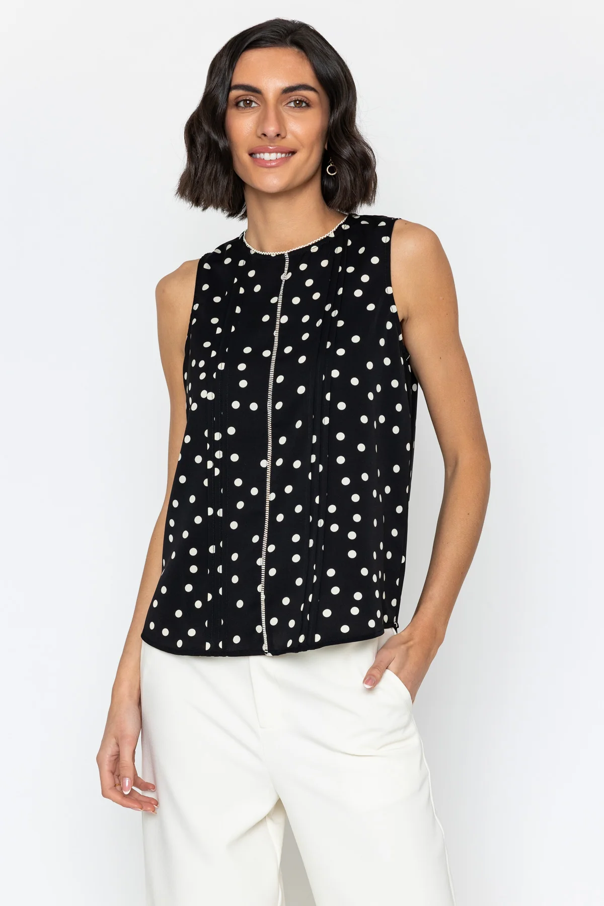Black Polka Dot Scallop Top