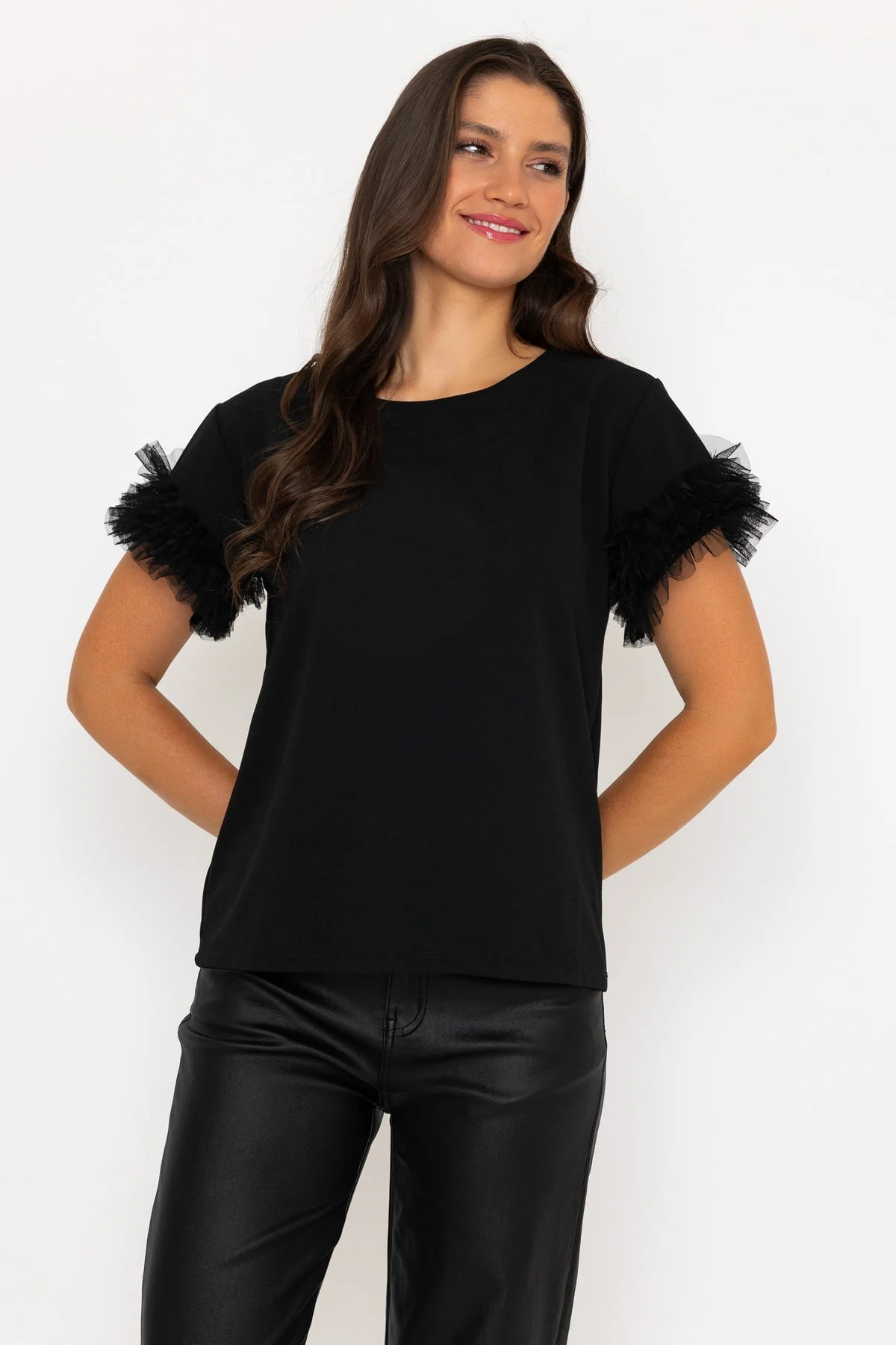 Black Ruffle Sleeve Top