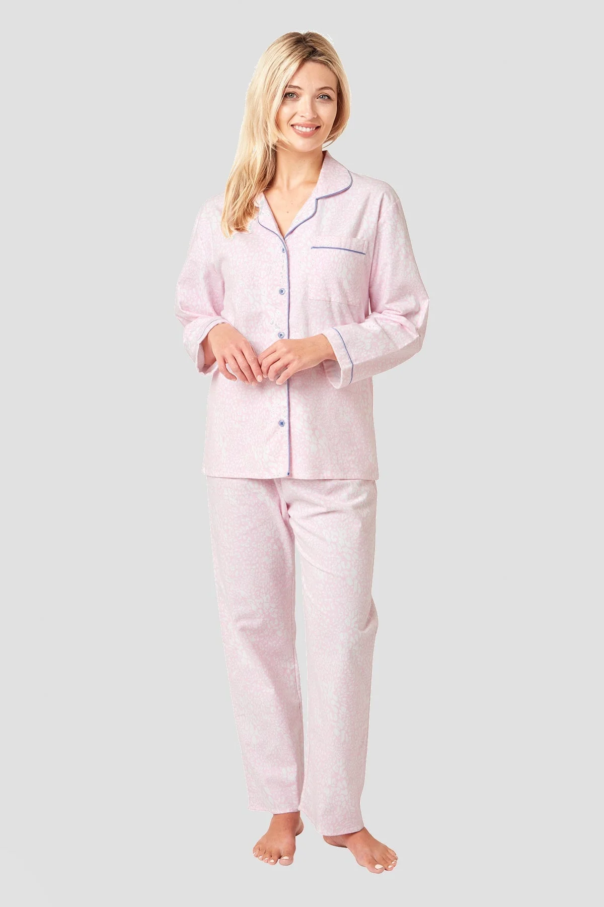 Ladies Cotton Pyjama Set in Pink Animal Print