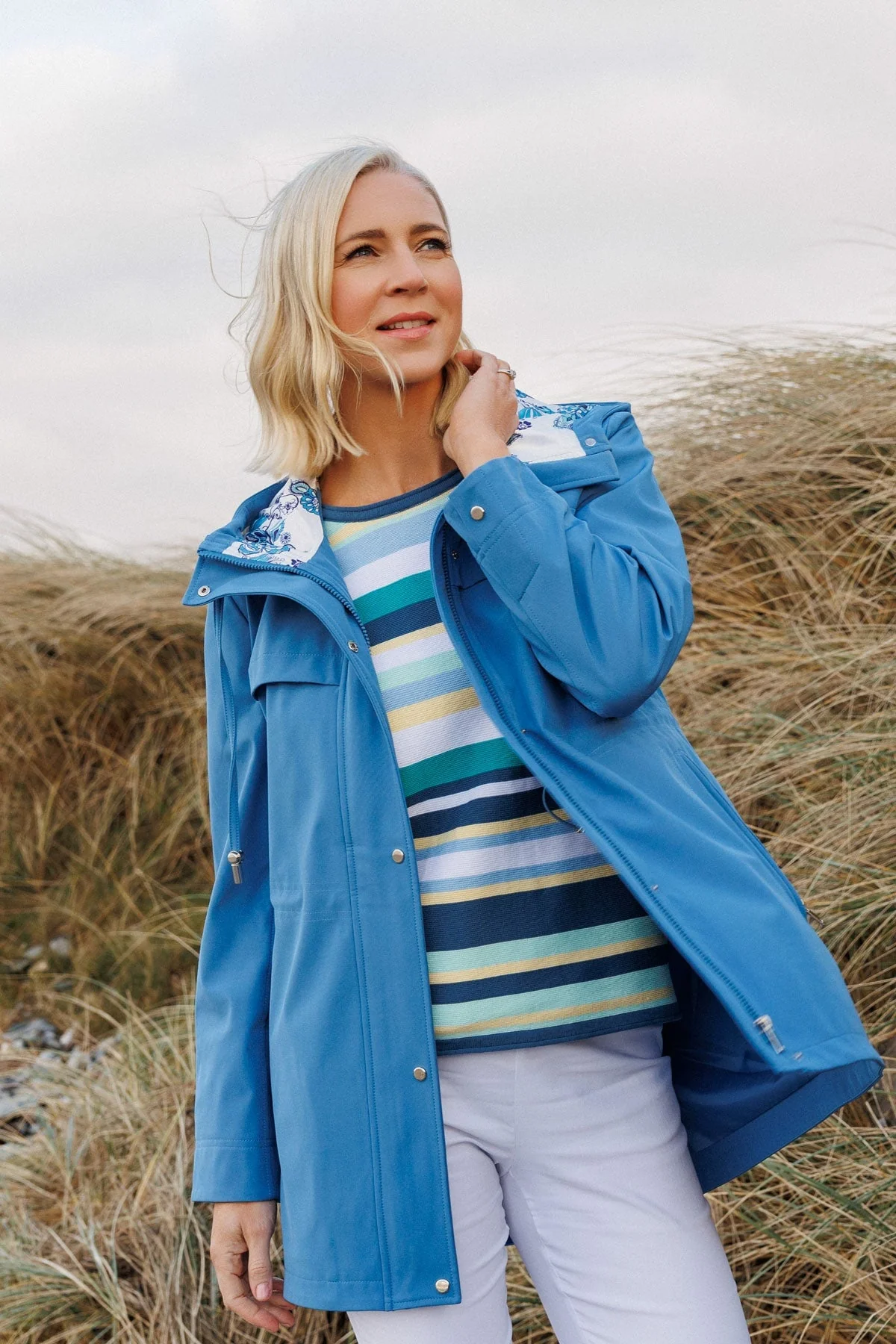 Drawstring Mac With Printed Hood Lining in Blue