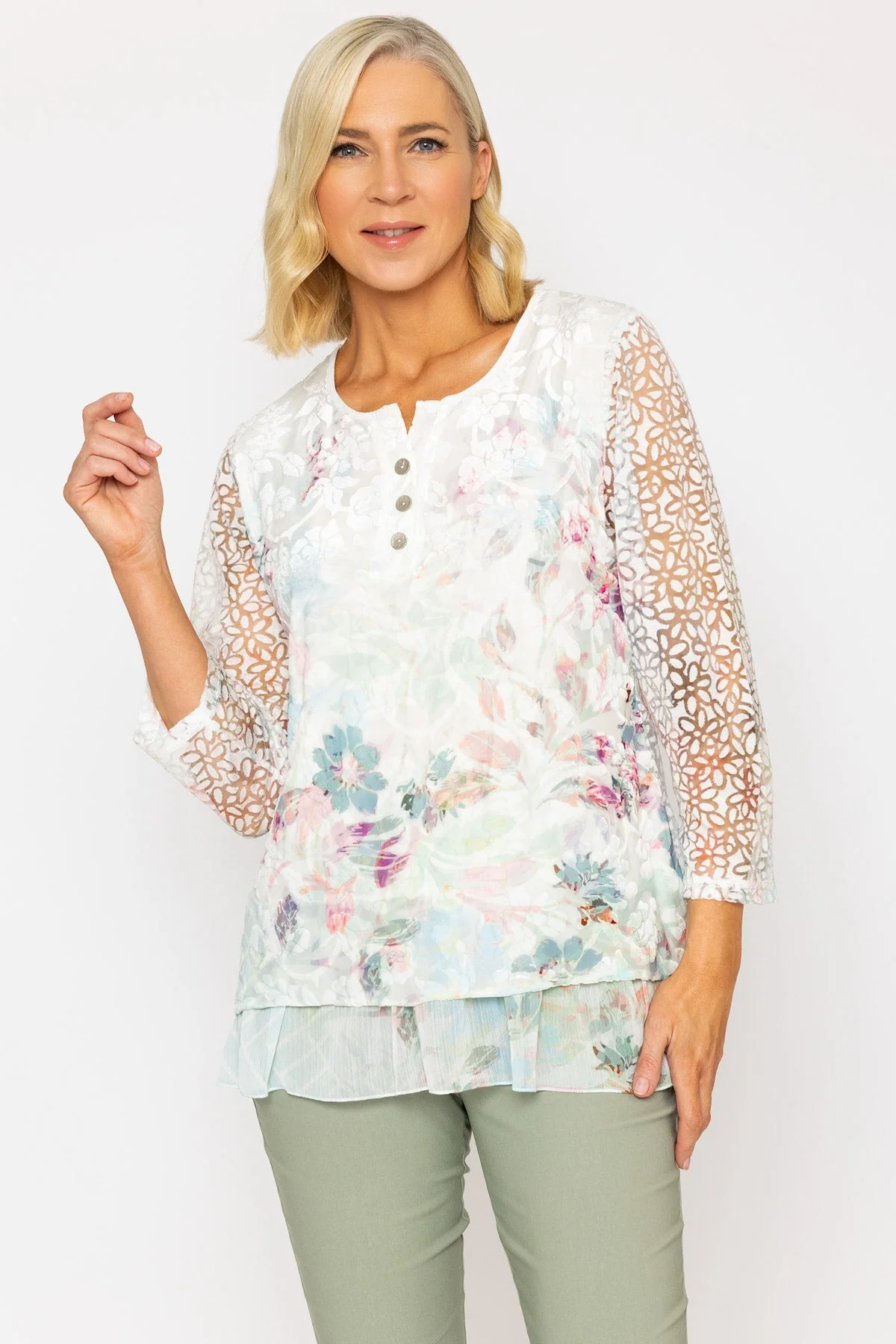 Printed Dovore 3/4 Sleeve Top