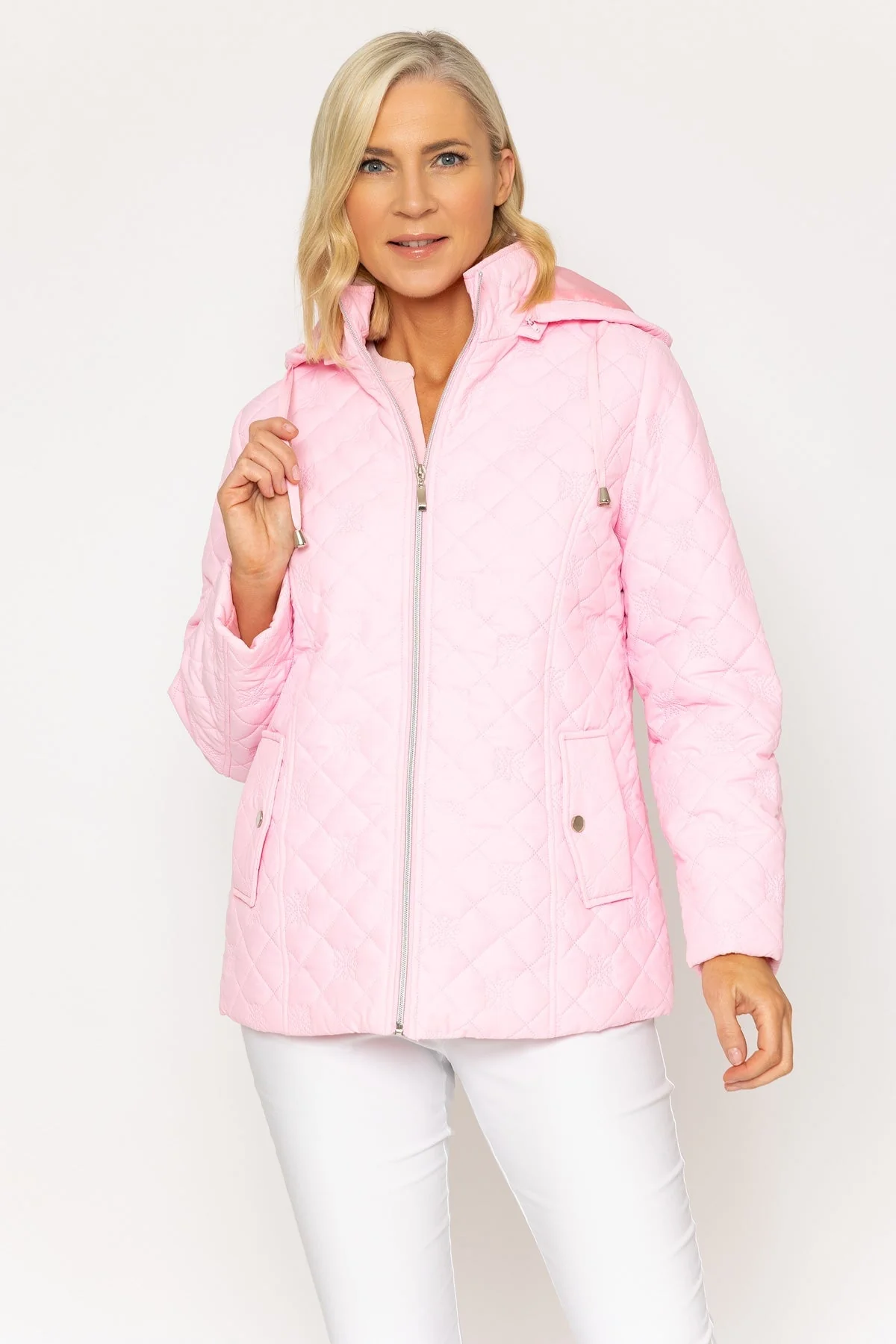 Pink Quilted Jacket With Hood