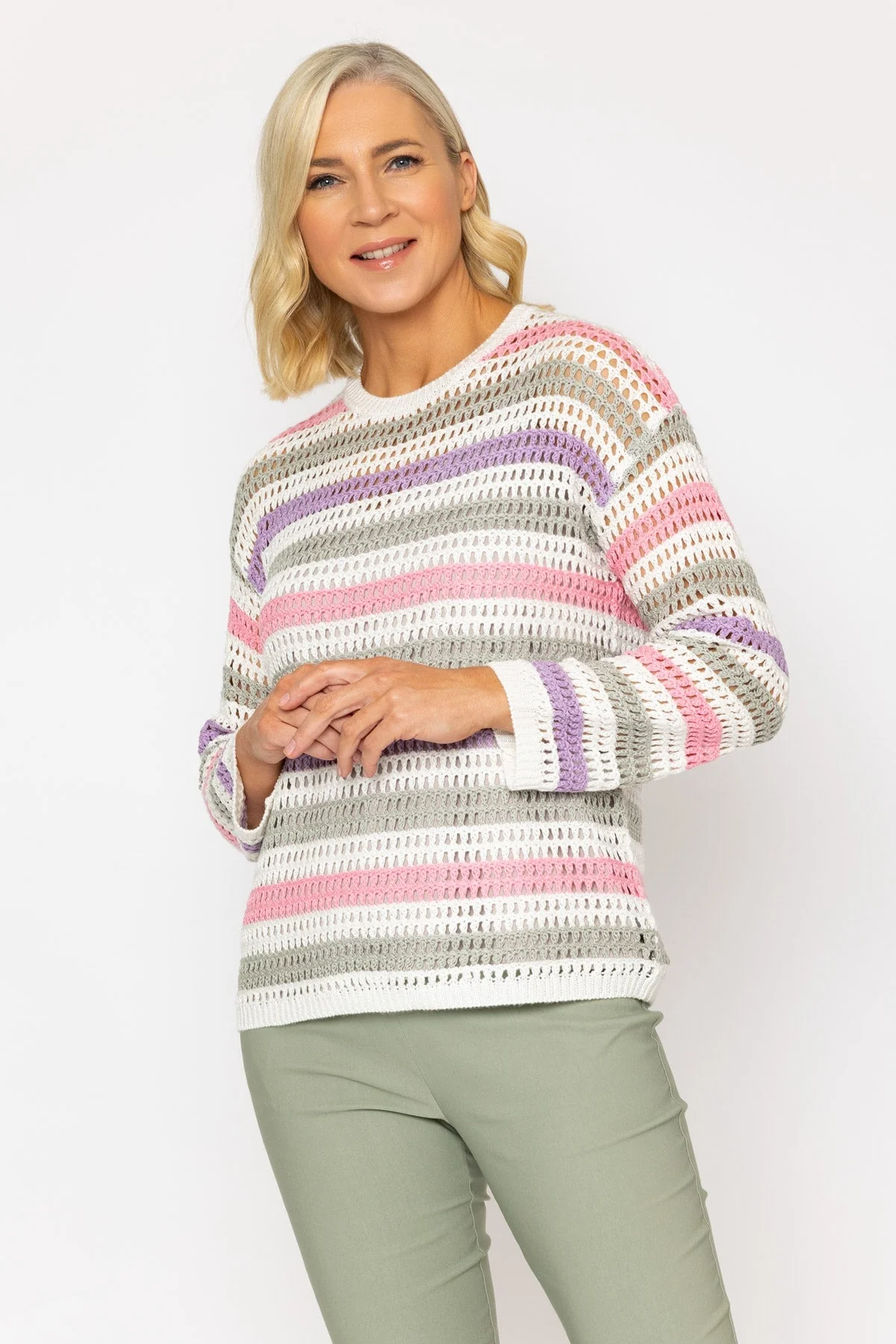 Multi Stripe Crochet Sweater