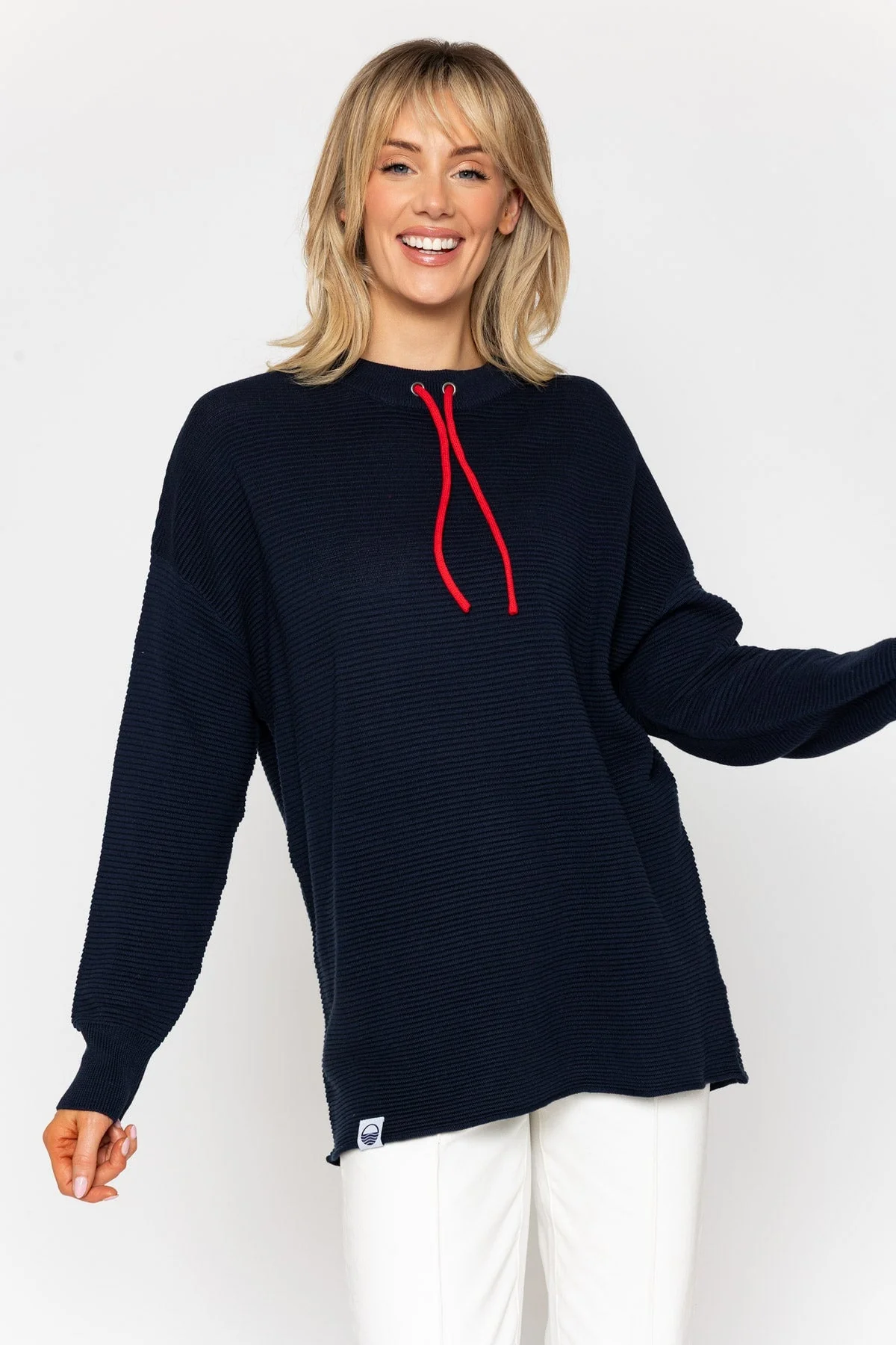 Navy Rib Sweater With Contrast Neck Ties