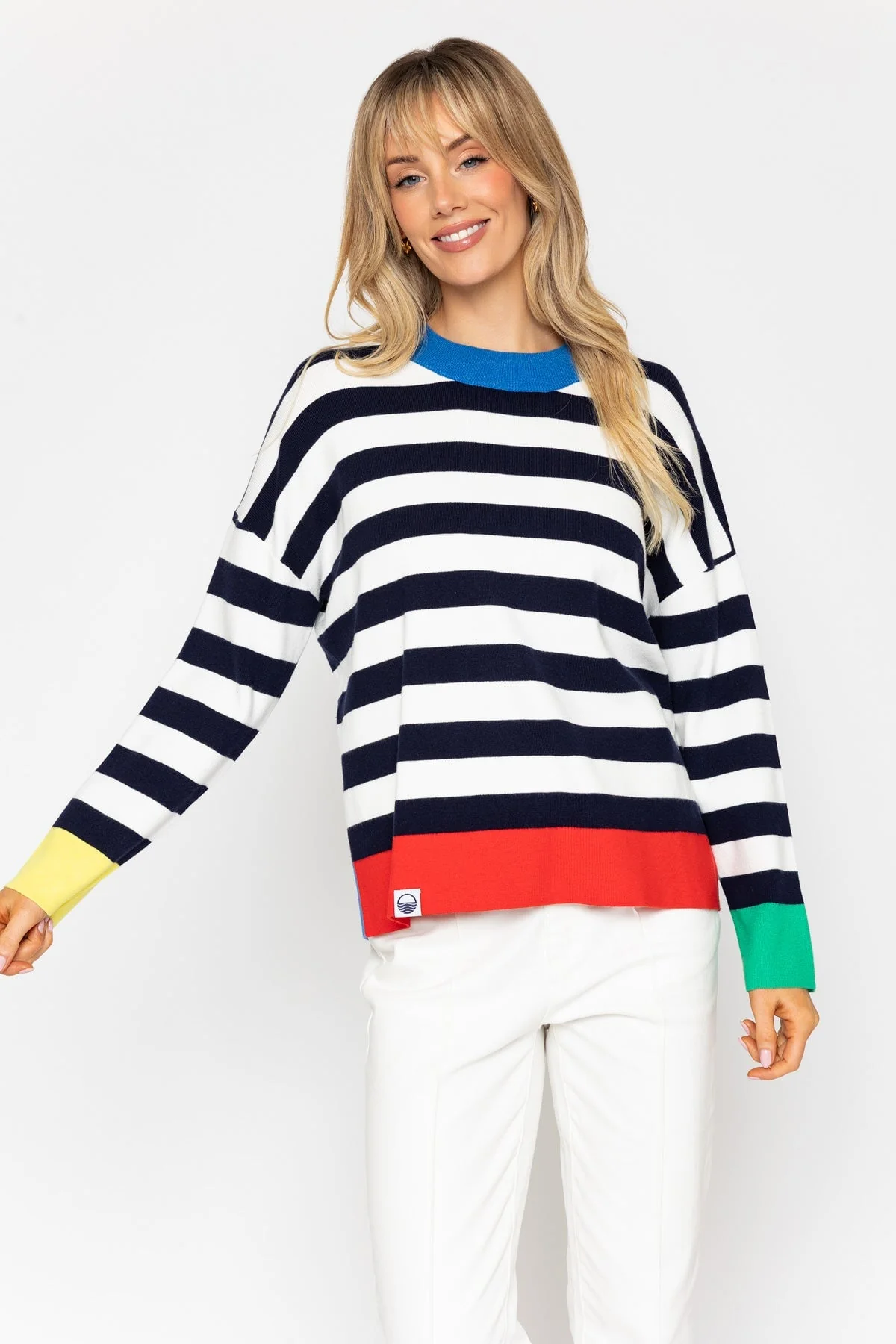 Navy Stripe Sweater With Contrast