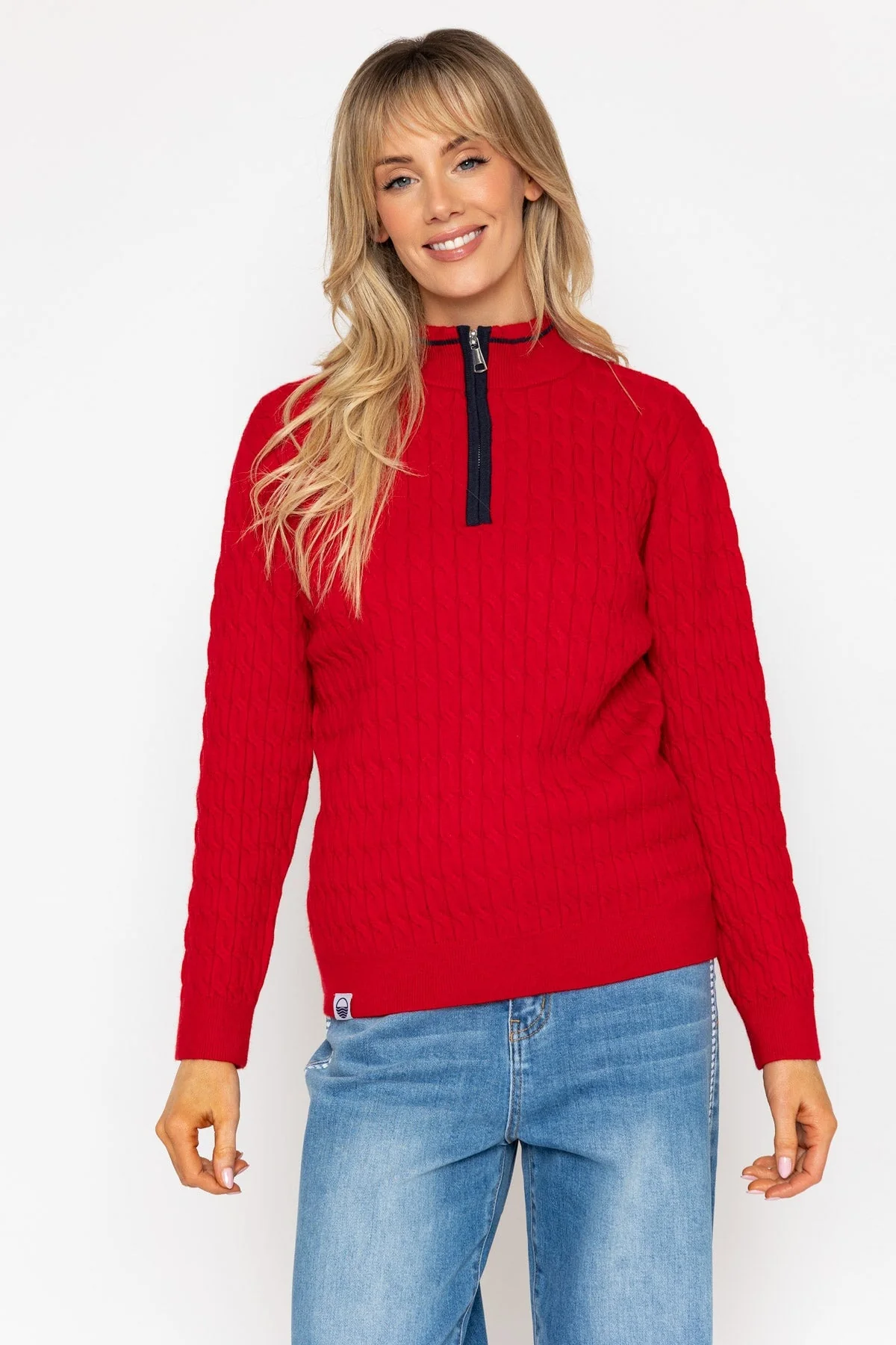 Red Cable Knit Half Zip Sweater